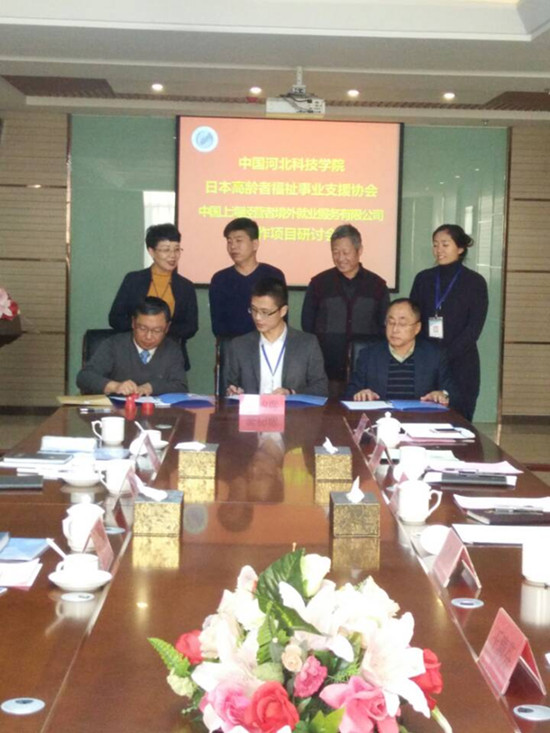 图为 执行董事与日本高龄者福祉事业支援协会签署合作意向书